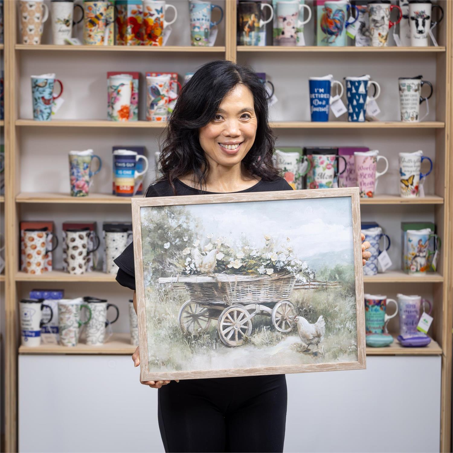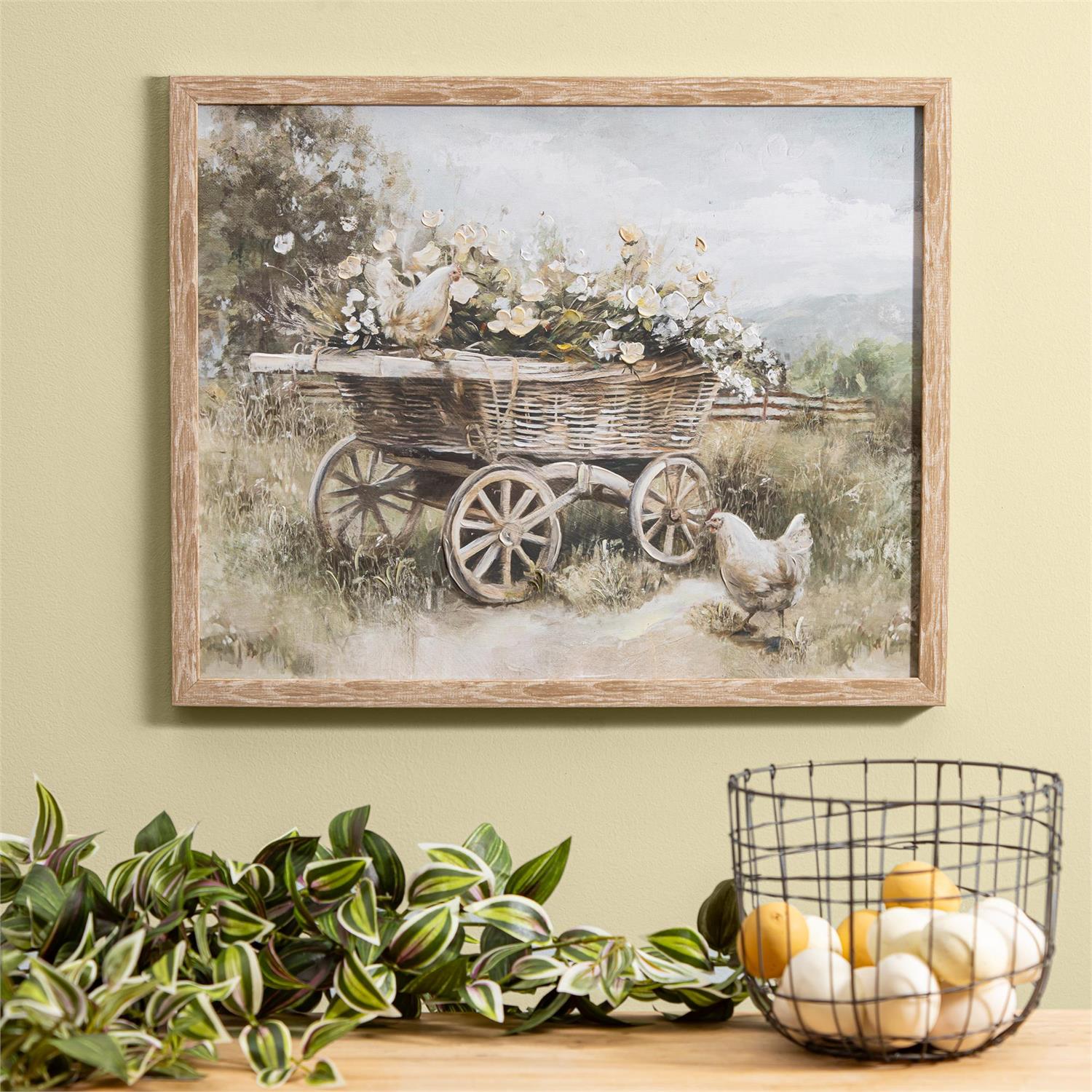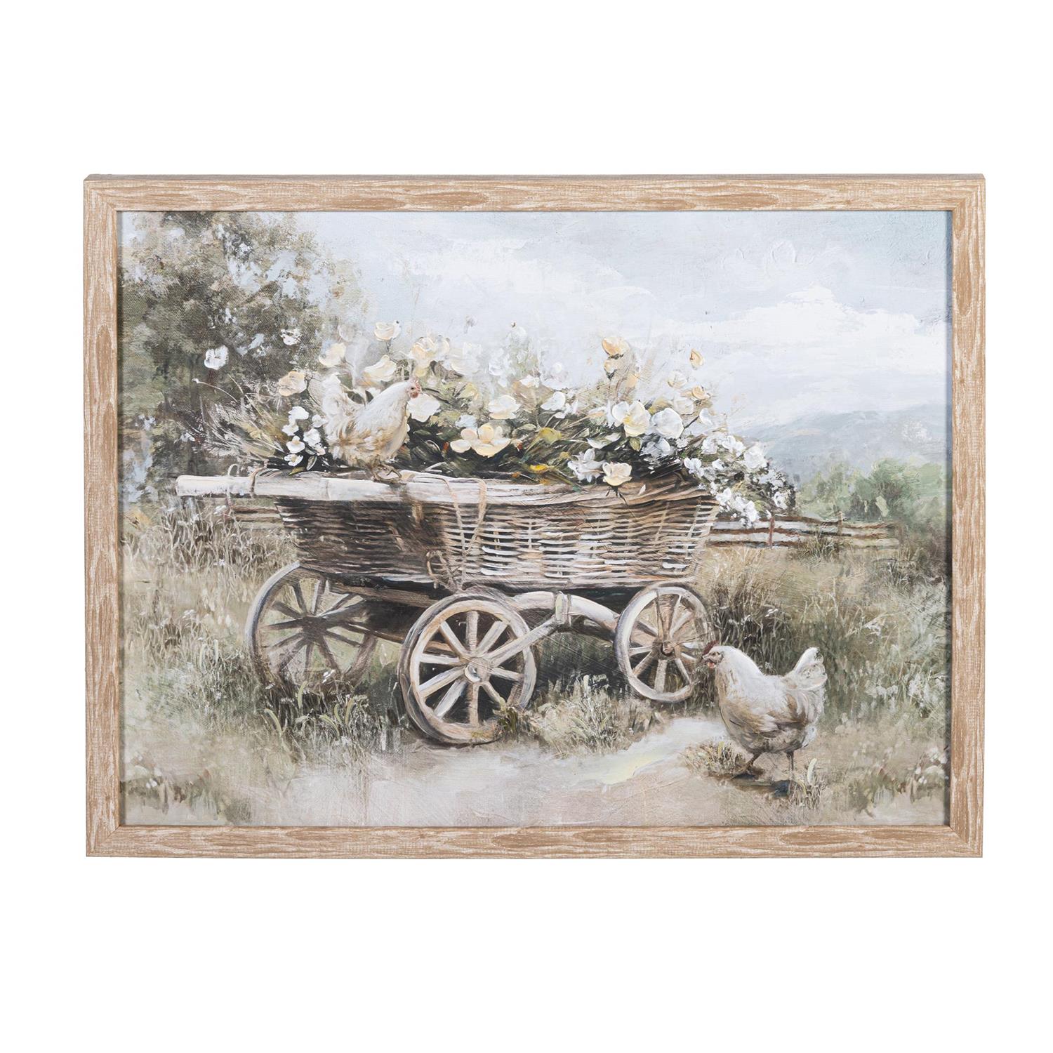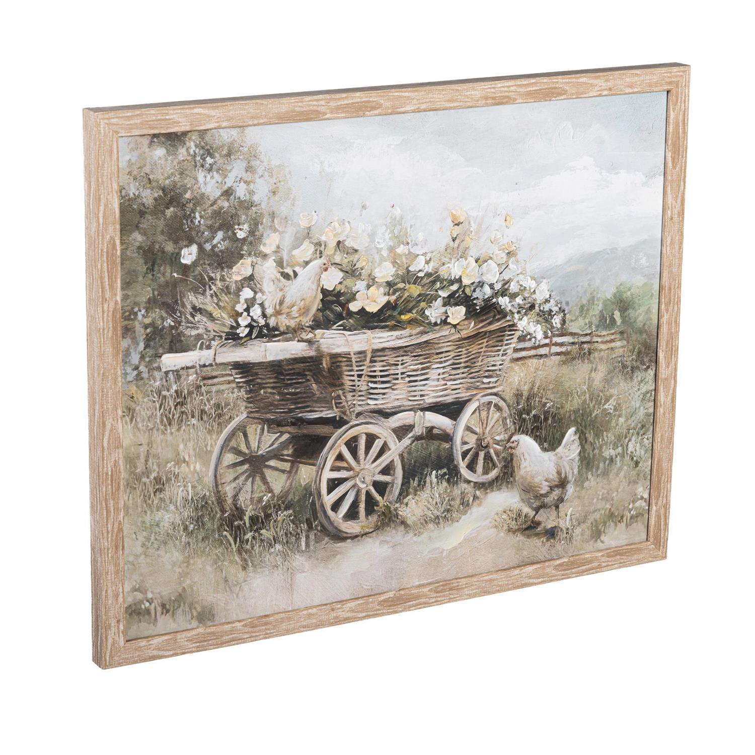 Petal and Plow Wall Decor, Flowers on Cart, Wood, 16" L x20" H
