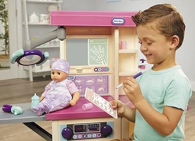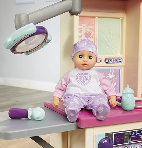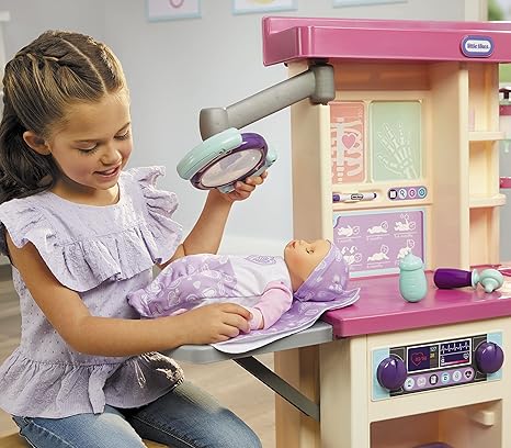 Regular price $139.75The Little Tikes® My First Baby Care Center™ allows kids to pretend they’re a doctor, nurse or new parent. Interactive features like an adjustable overhead exam light, folding exam table, X-ray station and more add to exciting role play. The unique Baby Born® doll comes with an outfit, diaper, hat, and swaddle blanket to cuddle your baby. The built-in X-ray station includes 2 ‘X-ray’ slides that can be drawn on (marker included) and the exam light really works. This playset is fun and educational and helps develop problem solving skills and promotes empathy through imaginative, doctor, nurse and parental role play. A bin, shelves and two snap-in holders are perfect for storing the Baby Born® doll and 15 accessories. Assembly required. Includes List: Baby Born® Doll, Baby Outfit, Hat, Diaper, Swaddle Blanket, 2 X-rays, 2 Bandages, Ear Scope, Stethoscope, Syringe, Bottle, Dry Erase Marker & Storage Bin. For ages 3+.
