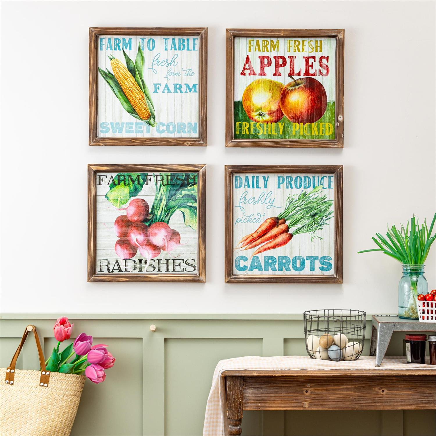 Petal & Plow Indoor Wall Decor, Wood, Farm Fresh Vegetables Wall Art, Asst of 4